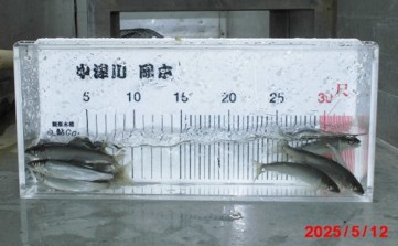 5月9日 相模川上流の大島 葉山島にあゆ500㎏放流しました。 1尾平均9㎝ 9.5g