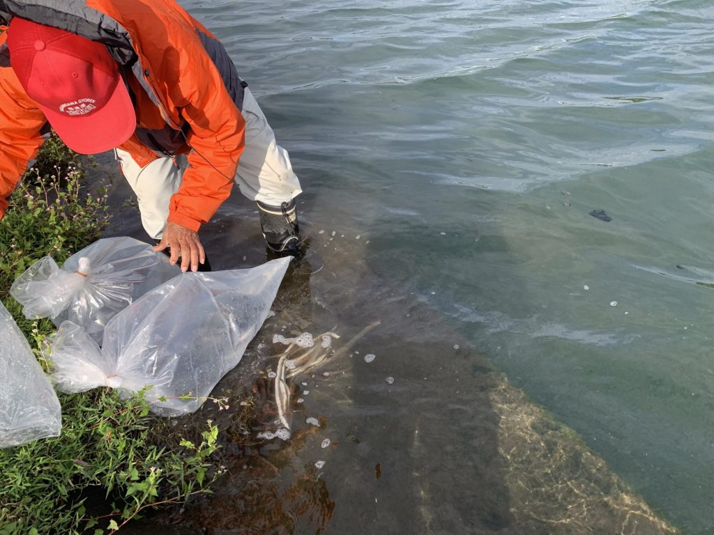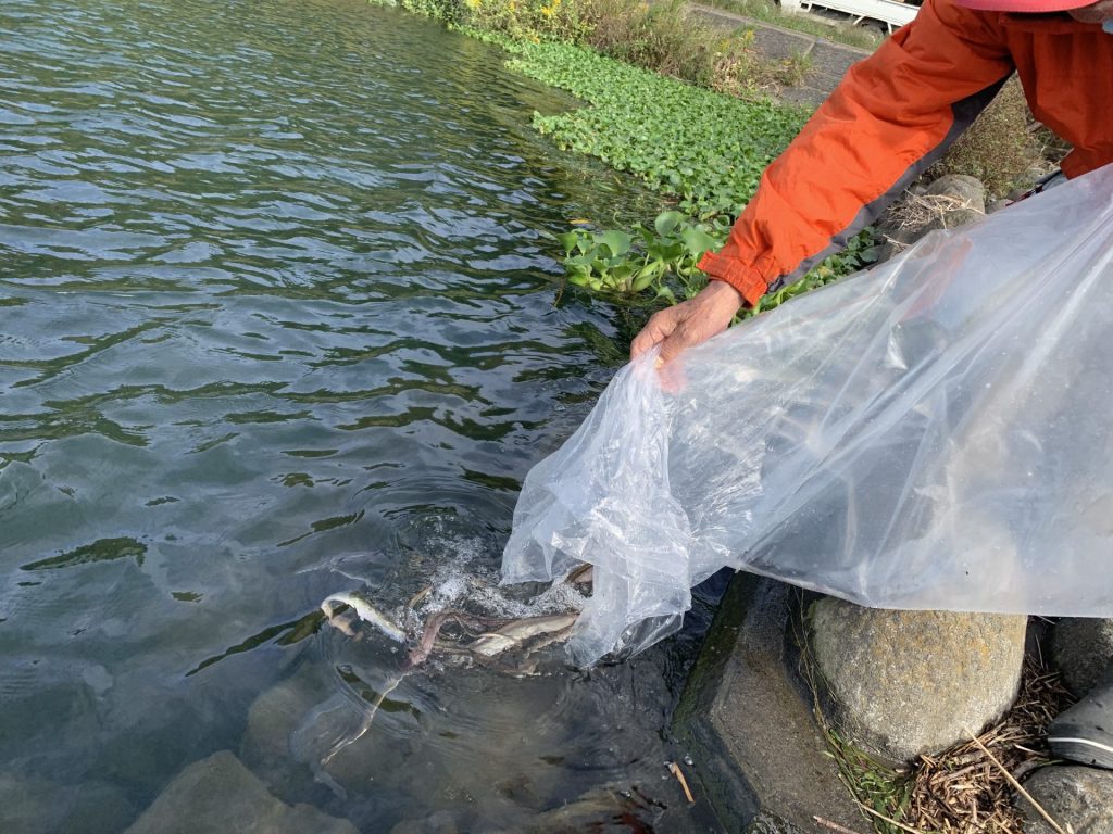 相模川下流 東名下・大神に放流を実施いたしました。