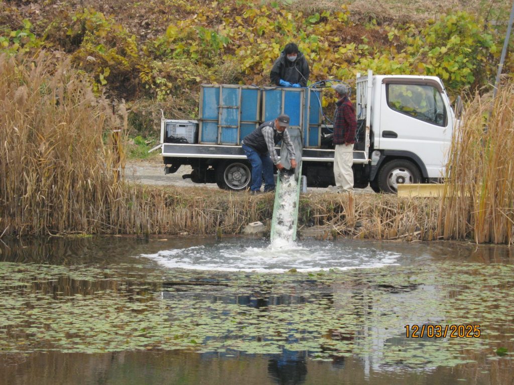 12/3(水)12/4(木)ふな4,000㎏を放流いたしました。 1尾平均28cm 約28g