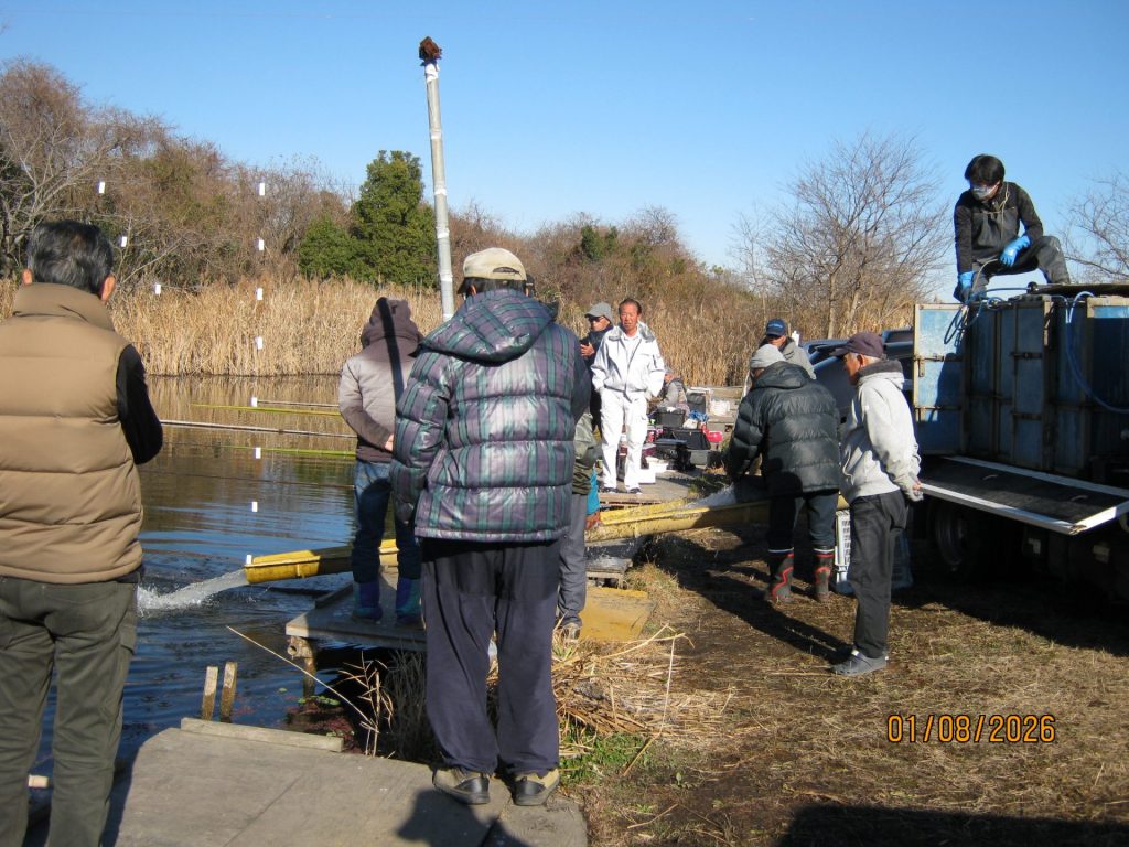 1/8(木)ふな200㎏を放流いたしました。 1尾平均35cm 約850g